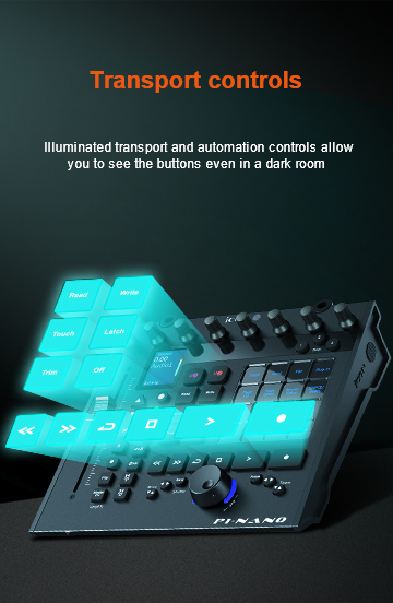 - 根据DAW功能启用的背光键,包括“Read读取”,“Write编写”,“Touch触摸”,“Latch锁存”,“Trim修剪”和“Off关闭”