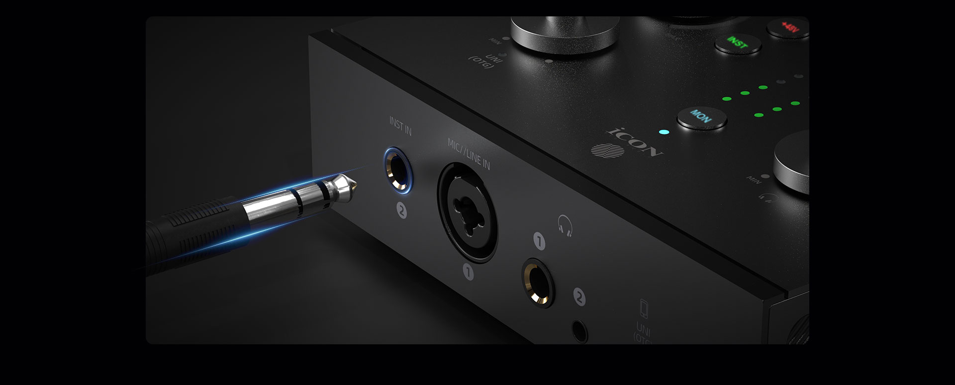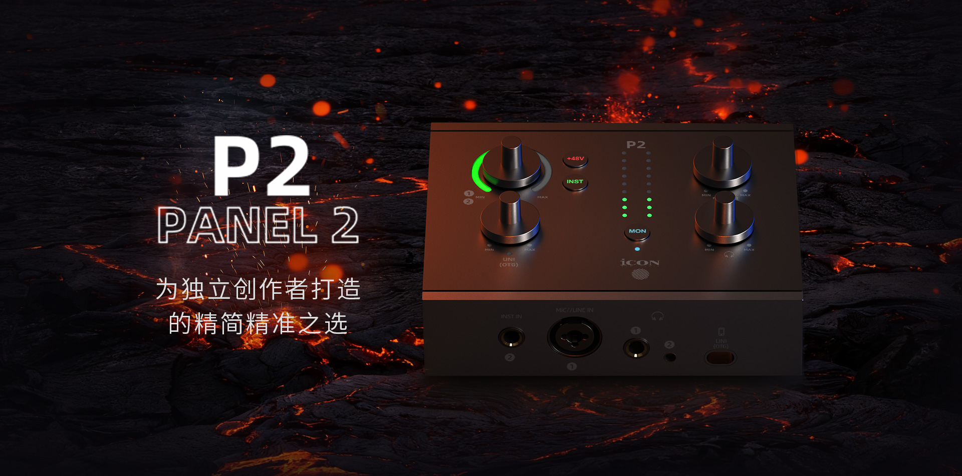 Panel 2 的设计秉持清晰性与精准性原则,除专用 1/4 英寸乐器接口外,还配备一个 XLR/6.35mm(1/4″)