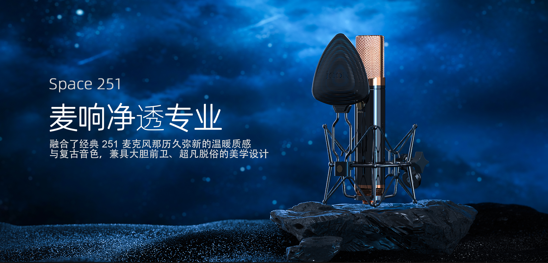 Space 251 从这款传奇麦克风中汲取灵感,向其深厚的传承致敬 —— 这种传承常与 20 世纪 60 至70 年代那些经久不衰的录音作品紧密相连。尖录音室和音频专业人士仍对原版 251 青睐有加,其中不乏布鲁斯・斯普林斯汀(Bruce Springsteen)、碧昂丝(Beyoncé)、席琳・迪翁(Celine Dion)、Garbage乐队的雪莉・曼森(Shirley Manson),以及汤姆・佩蒂(Tom Petty)等知名使用者。