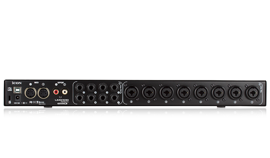 UMIX 1010 Rack Mountable USB 2.0音频接口提供10个输入和10个输出的高质量24-bit 96/1929khz模拟/数字转换。卓越的构建质量是Icon的标志,如8个麦克风/仪器前置放大器的打孔和清晰度所示,每个前置放大器都有一个单独的幻影电源开关。